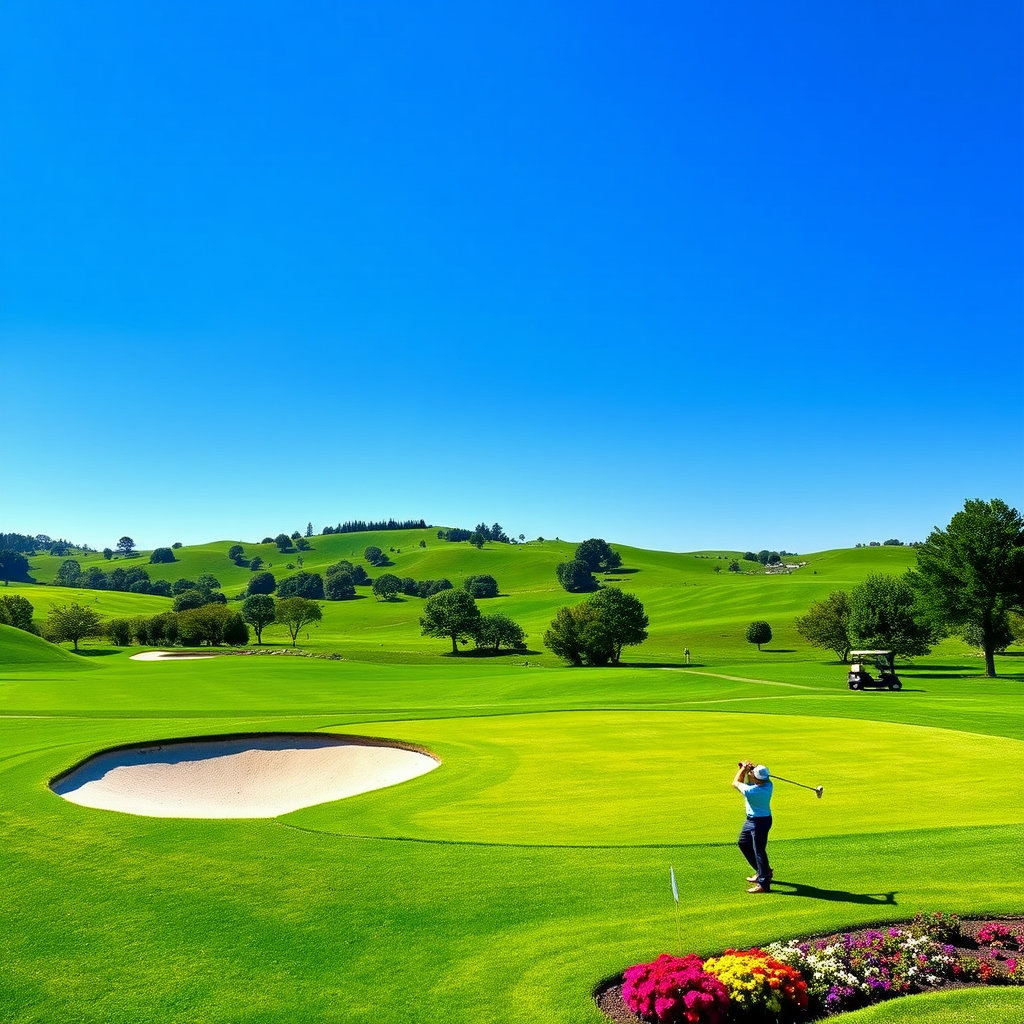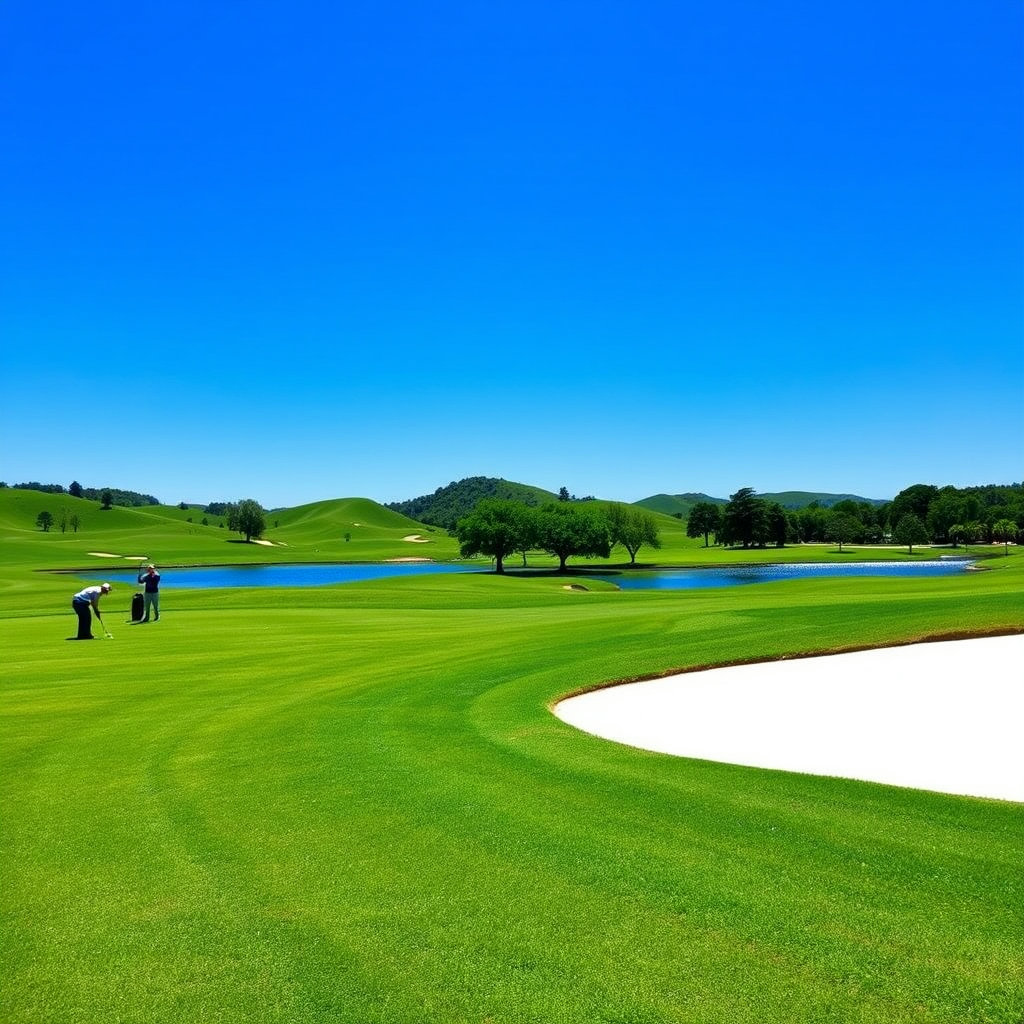 - 페어웨이(Fairway): 티잉 그라운드에서 그린까지 이어지는 잔디가 짧게 잘 정리된 구역입니다. 공이 잘 굴러가도록 관리됩니다.